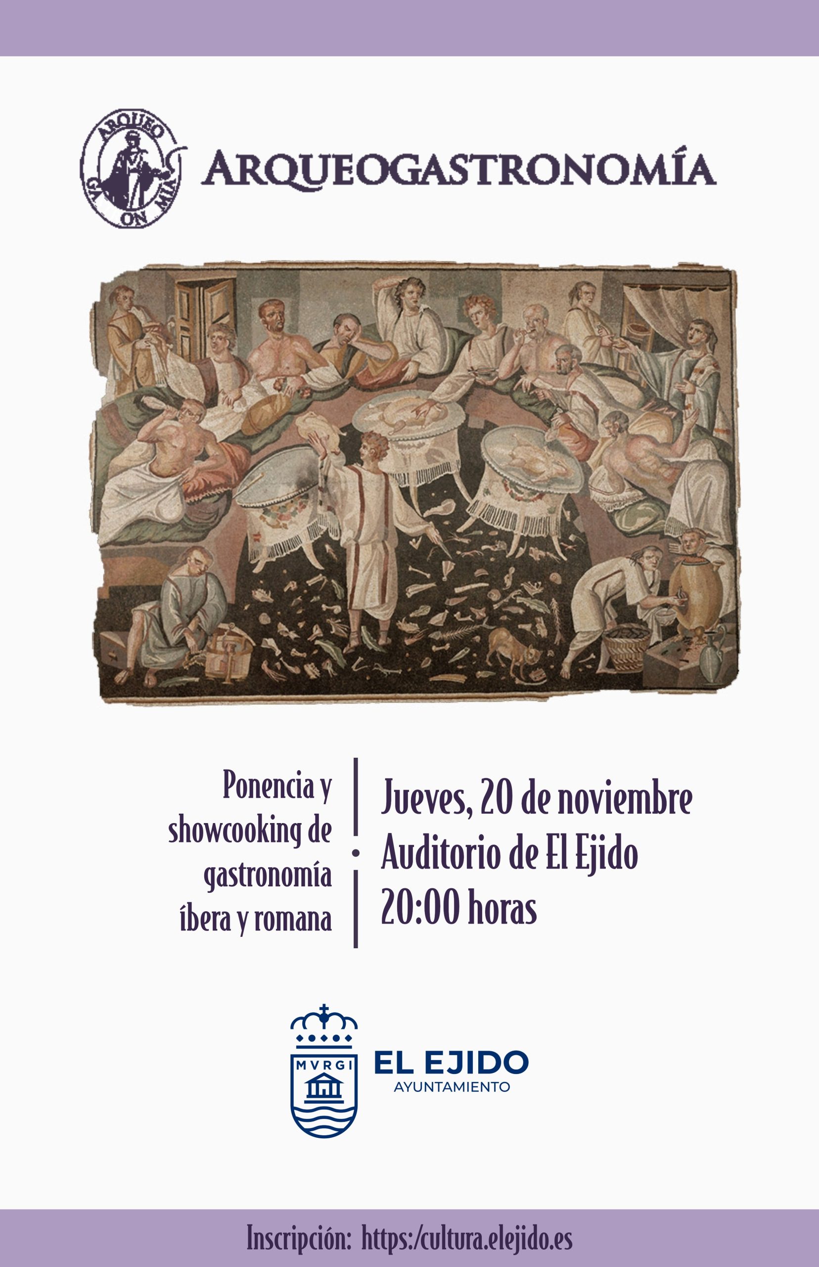 En el transcurso del almuerzo-convivium, además de explicar el sistema de producción de los alimentos, y descubrir la asombrosa tecnología culinaria ya existente en la época, podrán degustarse algunos de ellos, como vinos, garum, embutidos, panes y quesos elaborados con técnicas y productos de época alto-imperial romana en un convivium ibero-romano con cata maridaje científico al final del recorrido, que tendrá lugar en el Auditorio Municipal de El Ejido.